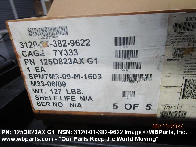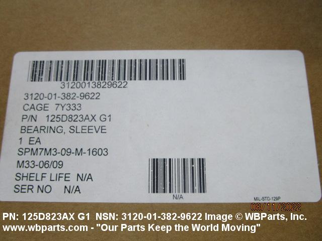 Part Alternates: 125D823AX G1, 125D823AXG1, 3120-01-382-9622, 01-382-9622, 3120013829622, 013829622