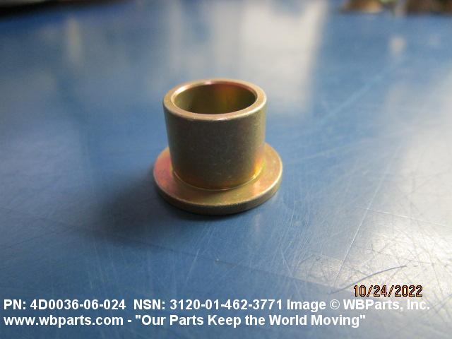 3120-01-462-3771 A tubular shaped unthreaded item with or without a flange at one end designed to be inserted into a hole to reduce the inside diameter of the hole and to protect the surrounding body structure from damage resulting from stress, strain, and/or vibration. The overall length must exceed 25 percent of the outside diameter or the shortest distance between peripheral flats of the body. Includes items which are divided into two or more segments which includes 180 degrees (3.141 radians) or less of the bearing periphery. For items made of rubber, see BUSHING, NONMETALLIC. See also BEARING, SLEEVE; BUSHING, TAPERED; SPACER, SLEEVE; INSULATOR, BUSHING; and BUSHING, ELECTRICAL CONDUCTOR. Excludes BUSHING, DRILL, JIG.20231200026Bearings, Plain, Unmounted53650035Bushings, Rings, Shims, and Spacers