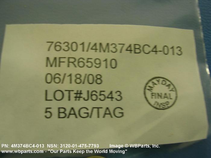 Part Alternates: 4M374BC4013, 4M374BC4-013, 3120-01-475-7793, 01-475-7793, 3120014757793, 014757793