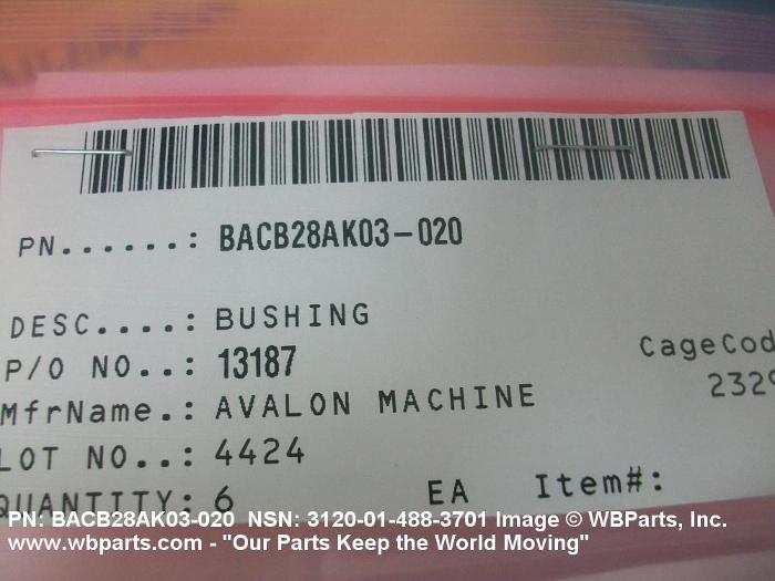 Part Alternates: BACB28AK03020, BACB28AK03-020, 3120-01-488-3701, 01-488-3701, 3120014883701, 014883701