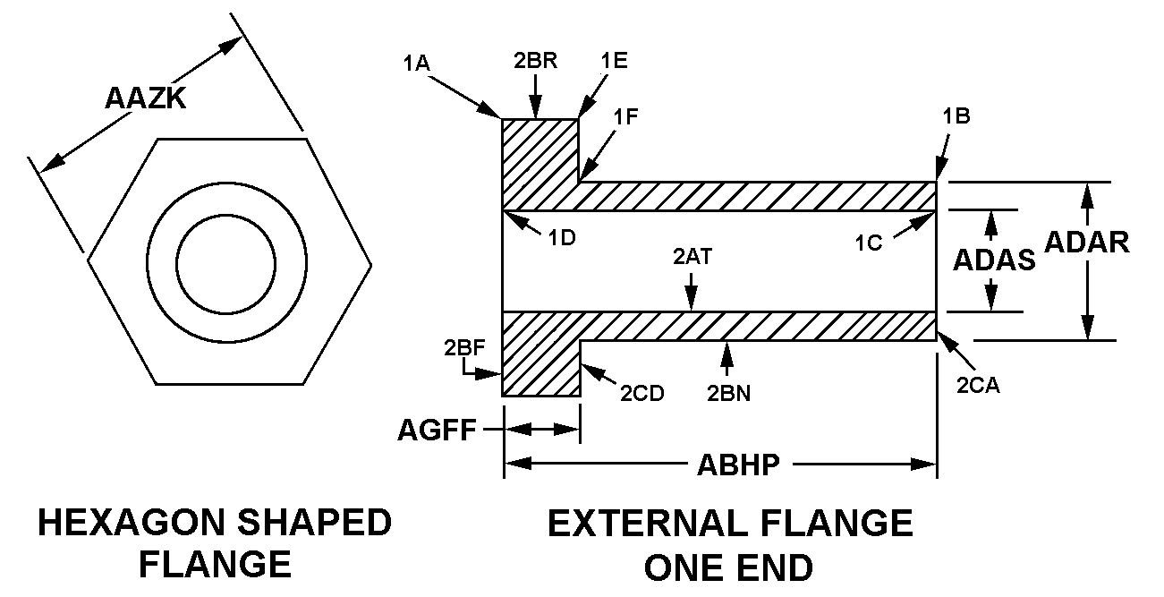 | STYLE DESIGNATOR | 22F-3 HEXAGON SHAPED FLANGE INTERNAL FLANGE AT BOTH ENDS |