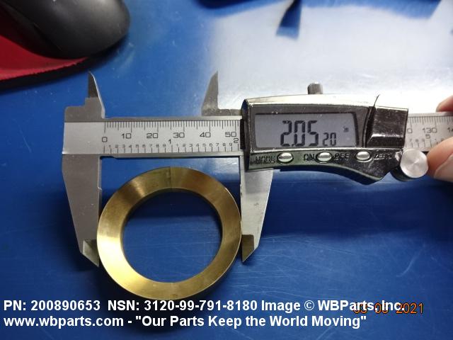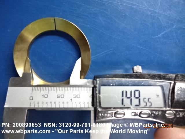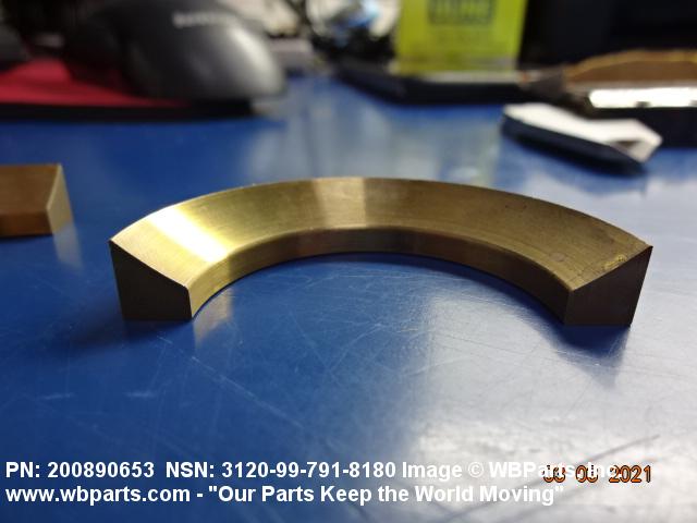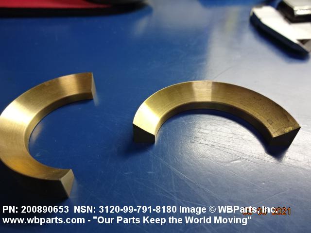 3120-99-791-8180 An item of any peripheral shape usually having one flat or spherical surface and a centrally located hole. It is designed for applications involving moving (kinetic) loads. Except for items fabricated from bearing quality synthetic (plastic) or composed of multilayer material, one bearing surface must either have a specific surface finish designation of 32 microinch (0.8 micrometre) or less, arithmetical average (aa) (arithmetic mean deviation) or one of the following conditions: be lapped or ground; have visible or detectable means of lubrication; grooves, indentations; or self-lubrication. The thickness must not exceed 25 percent of the outside diameter of the shortest distance between peripheral flats (when thickness and/or outside diameter is designated as a tolerance dimension, the maximum dimension will be used to determine compliance). Excludes straight, tubular (without flange) items having a bearing surface(s) parallel to the axis of the bore only. See also WASHER, FLAT and SPACER, SLEEVE.