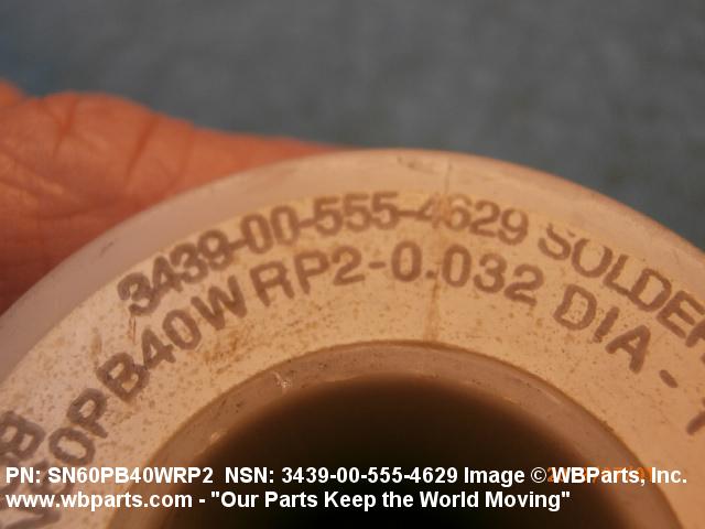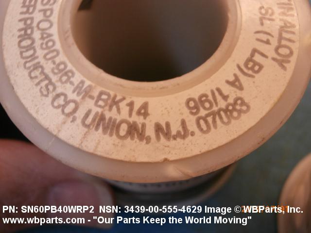 Part Alternates: ASTM B32, ASTMB32, SN60PB40WRP2 0.032 1LB, SN60PB40WRP200321LB, SN60WRP2, SN60WRP2 0.031 1LB, SN60WRP2 0.032 1 LB, SN60WRP2 0.032 1LB, SN60WRP200311LB, SN60WRP200321LB, QQS571, QQ-S-571, 3439-00-555-4629, 00-555-4629, 3439005554629, 005554629