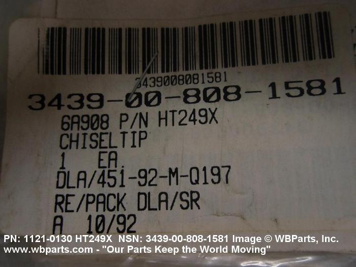 3439-00-808-1581 A metallic item designed to be attached to the end of an electric soldering iron or an electric soldering iron handle for the purpose of transmitting heat to the item being soldered. Tt may include an integral electrical heating element and may be designed to accommodate a tiplet.