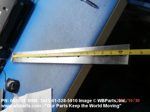 | SPECIAL FEATURES | HEAT TREATED 57-58 R.C.; HAS 6 HOLES DRILLED 10.25 MM, TAPPED M12-1.75, CENTERED 1.000 FROM BOTTOM/LONG EDGE AND 2.44, 6.44, 10.44, 14.44, 18.44, AND 22.44 IN. FROM LEFT EDGE |