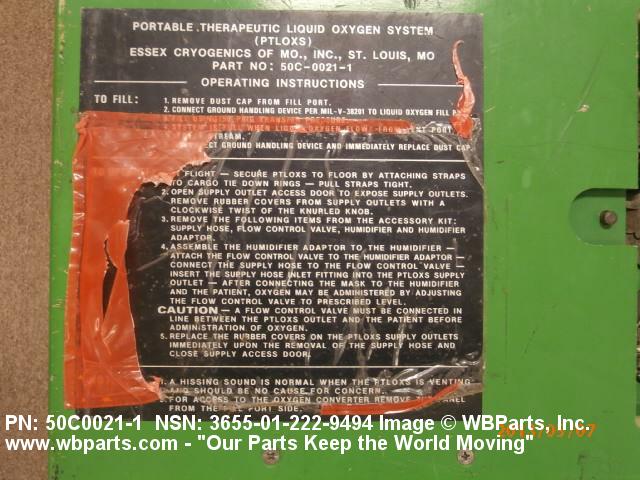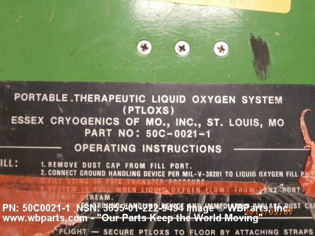 | GENERAL CHARACTERISTICS ITEM DESCRIPTION | CONVERTER-STORAGE UNIT FOR USE INC130 ACFT TO SUPPLY OXYGEN ON THERAPEUTIC BASIS TO MAX OF 3 PATIENTS AT RATEOF 15 LITERS PER MINUTE;INCLUDES CARRYING CASE,THREE 20 FT HOSES,FLOW METERSAND HUMIDIFICATION BOTTLES;18.2 IN. DPBY 15 IN. WD BY 22.5 IN. HT;WT 55 LBS EMPTY,80 LBS FULL |