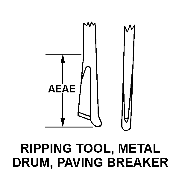 3820-00-641-7762 A solid metal tool with a shank at one end to fit the chuck of a paving breaker, the opposite end processed into a blade designed for ripping metal. Used for cutting out metal drum heads or splitting drums lengthwise.