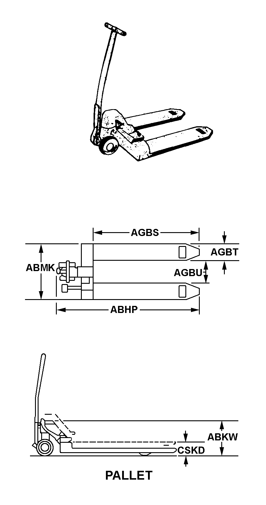 3920-01-264-2582 A hand-propelled, wheeled vehicle having a mechanical or hydraulic operated lifting mechanism. It is used for lifting and transporting materials. For self-propelled (powered) pallet-type trucks, see TRUCK, PALLET, POWERED; and for self-propelled (powered) skid type (lift platform) trucks, see TRUCK, LIFT, PLATFORM.