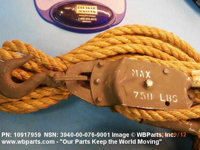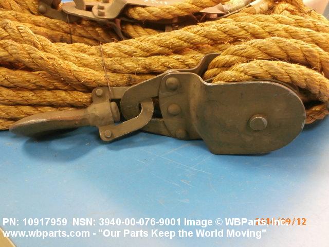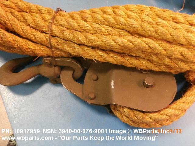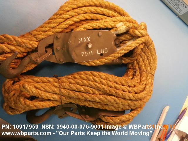 3940-00-076-9001 A mechanical device consisting of one or more tackle blocks with lines, arranged for hoisting or pulling.