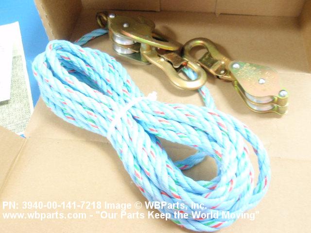 3940-00-141-7218 A mechanical device consisting of a group of blocks and tackles, which may have attachments such as wire grips, shackles, hooks, rings or the like. It is designed to raise and pull from several directions to or from a given point.