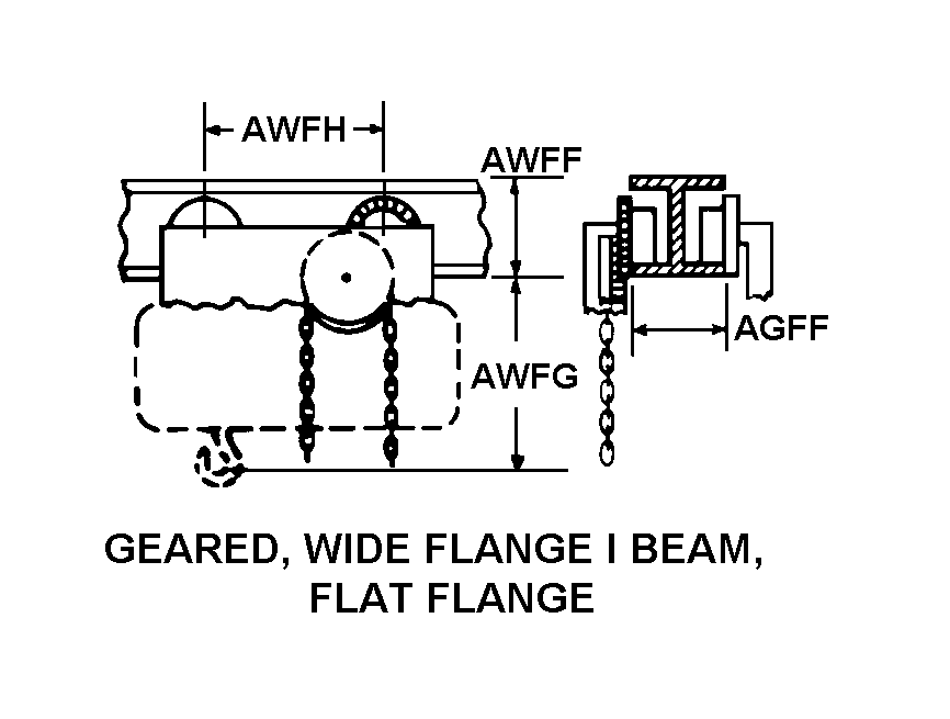 | TROLLEY SUSPENSION STYLE | 12 GEARED, WIDE FLANGE I BEAM, FLAT FLANGE |
