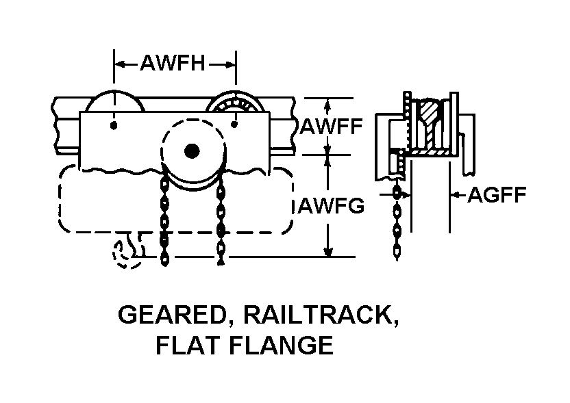 | TROLLEY SUSPENSION STYLE | 14 GEARED, RAILTRACK, FLAT FLANGE |