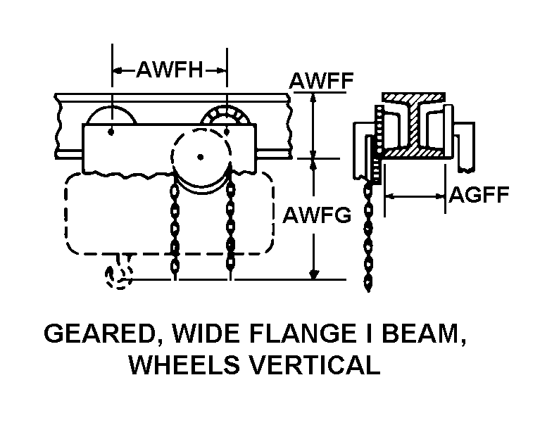 | TROLLEY SUSPENSION STYLE | 10 GEARED, WIDE FLANGE I BEAM, WHEELS VERTICAL |