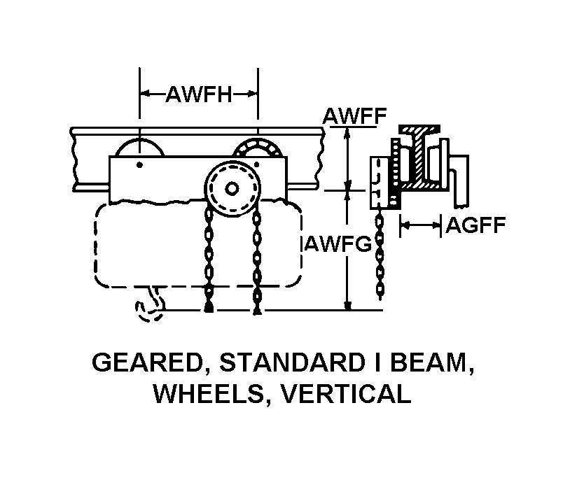 | TROLLEY SUSPENSION STYLE | 8 GEARED, STANDARD I BEAM, WHEELS VERTICAL |