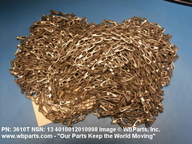 4010-01-201-0998 A series of like metal links interconnected by bending ends through or over the adjacent unit. This does not include chain with attachments or terminations. See also CHAIN, STUD LINK and CHAIN, BEAD.