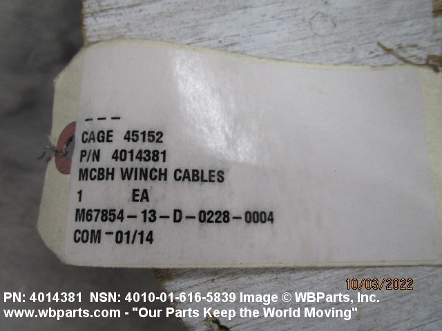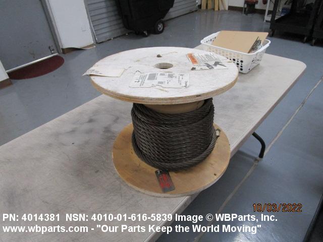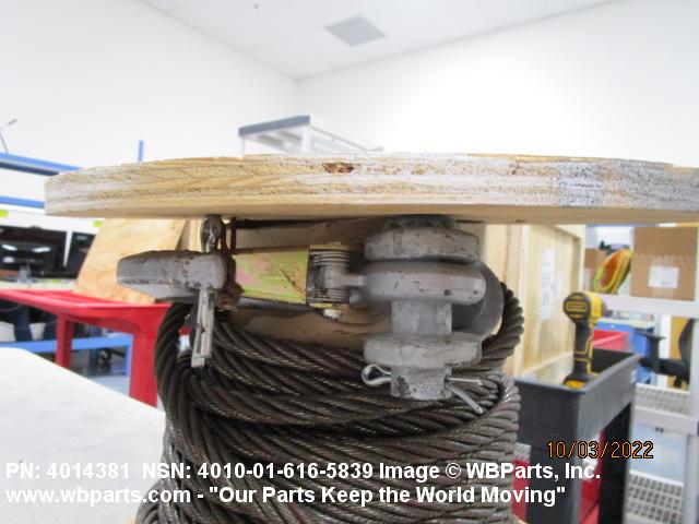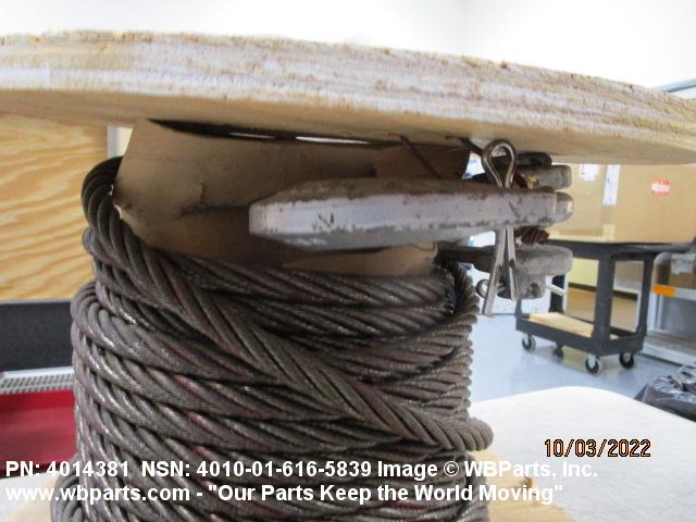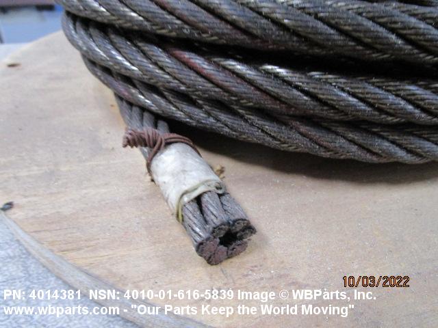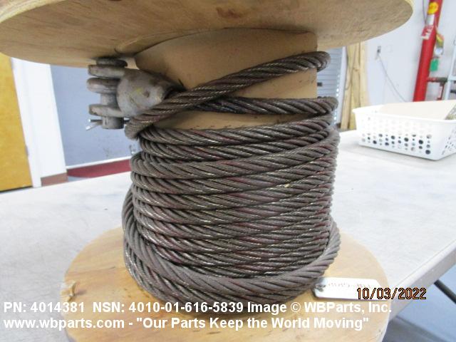 4010-01-616-5839 An assembly consisting of wire rope, with terminal attachment(s) and/or end loop(s), in a continuous run from end to end. (If without attachments, one end must terminate in a loop.) It may contain one or more intermediate and/or end attachments such as sliding or fixed ring(s), hook(s), or the like. For items specifically designed for aviation, see WIRE ROPE ASSEMBLY, SINGLE LEG, AVIATION. Excludes CONTROL ASSEMBLY, PUSH-PULL.
