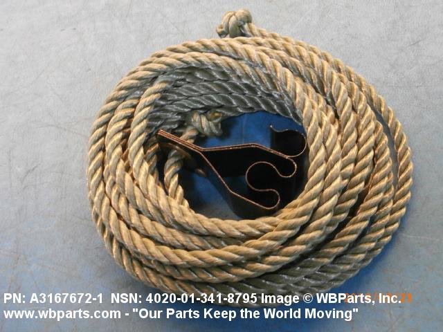 4020-01-341-8795 An assembly of fiber rope with or without terminal attachments in a continuous run from end to end. (If without attachments, one end must terminate in a loop.) It may contain intermediate and/or end attachments such as sliding or fixed ring(s) or hook(s).