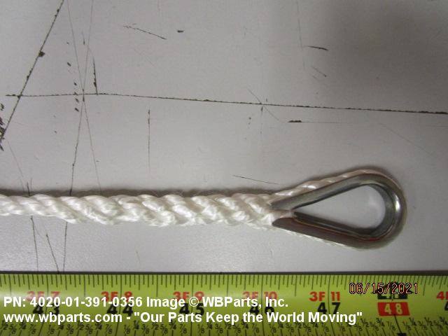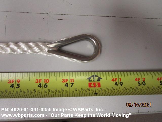 4020-01-391-0356 An assembly of fiber rope with or without terminal attachments in a continuous run from end to end. (If without attachments, one end must terminate in a loop.) It may contain intermediate and/or end attachments such as sliding or fixed ring(s) or hook(s).