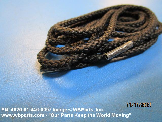 4020-01-446-8097 A braided cordage item (or twisted fiber glass item) of any diameter with or without a core (includes natural or synthetic fibers). Excludes items with fittings; LINE (as modified). See also TWINE, FIBROUS and ROPE, FIBROUS.