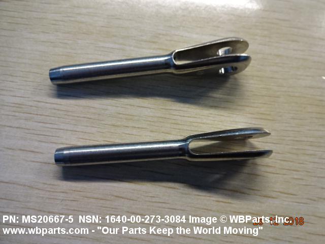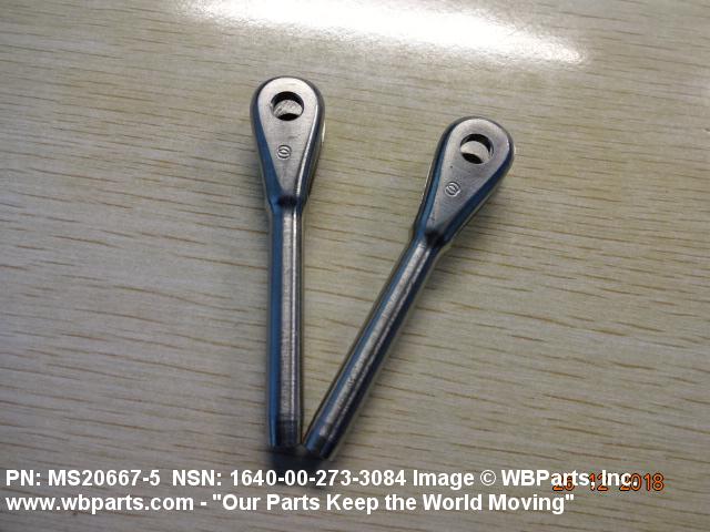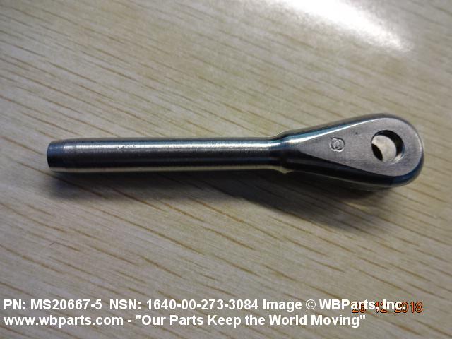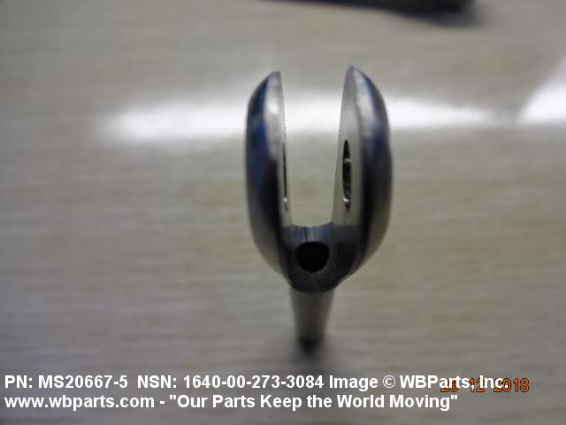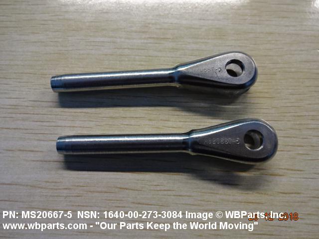 4030-00-273-3084 An item designed for swaging to a ROPE, FIBROUS or ROPE, WIRE as an end termination. One end is a cylindrical sleeve and the opposite end is formed in the shape of a fork, eye, slot, and the like, for attaching to another part. For items specifically designed for aviation, see TERMINAL, ROPE, SWAGING, AVIATION.