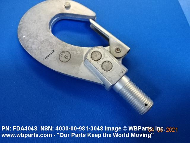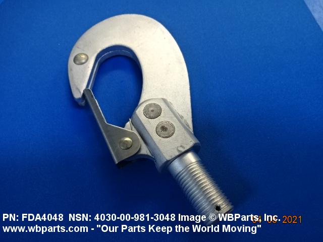 4030-00-981-3048 A strongly constructed metal item having a relatively narrow, shallow throat. It may or may not have a safety throat closure. Excludes HOOK, LOGGING LINE and HOOK, CARGO.