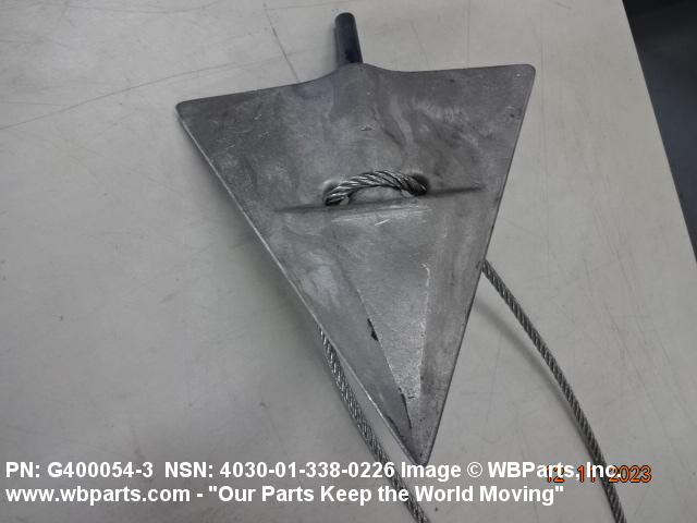 4030-01-338-0226 An anchor which may be any one of several designs, such as a ribbed cone, an assembly of expanding blade or plates, or a helical balde or spring. The item must have either an integral driving rod or accommodations for affixing a driving rod which may not be included. It may include a cable assembly which facilitates installation and is an integral part of the item. Does not include guy wire(s) or rope(s). Excludes POST, SCREW METAL.
