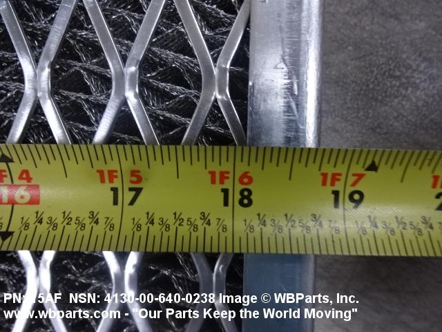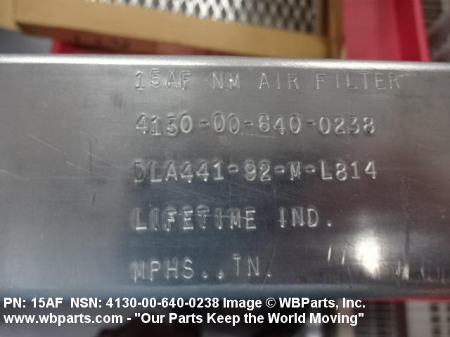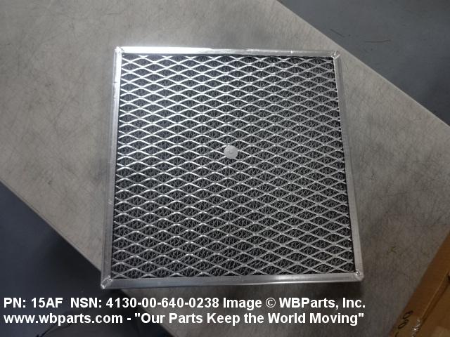 4130-00-640-0238 A replaceable device designed to remove dust, pollen or other foreign matter from the air passing through it. The removal of particles is accomplished by porous fibrous or shredded material (metallic or nonmetallic) which is loosely woven or matted and confined in a frame or retained between perforated sheets of firmer material. It is designed to fit into air conditioners, ventilation systems and hot air furnaces. It may have facilities for radio frequency/electromagnetic interference shielding. The filter may be cleaned by the use of compressed air, blown through the filter element, or by using water and a suitable detergent for cleaning purposes which would extend the life of the filter.20216600062Aircraft Air Conditioning, Heating, and Pressurizing Equipment41300045Refrigeration and Air Conditioning Components