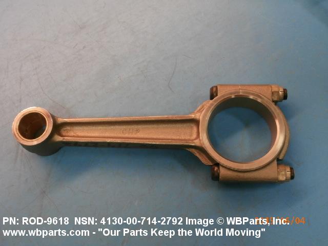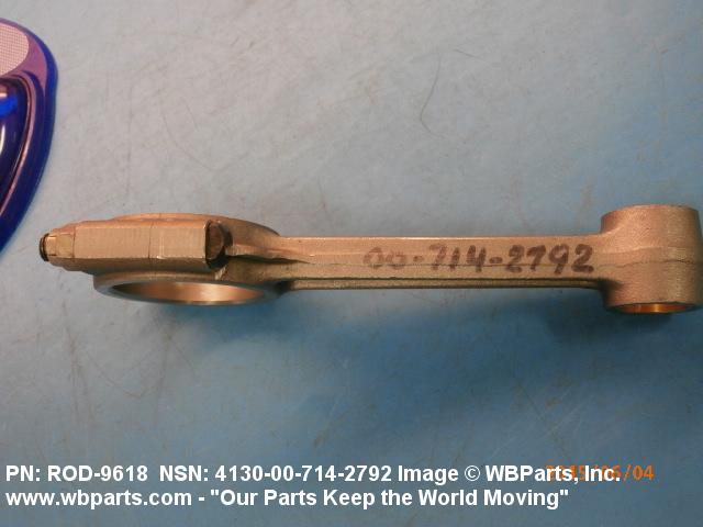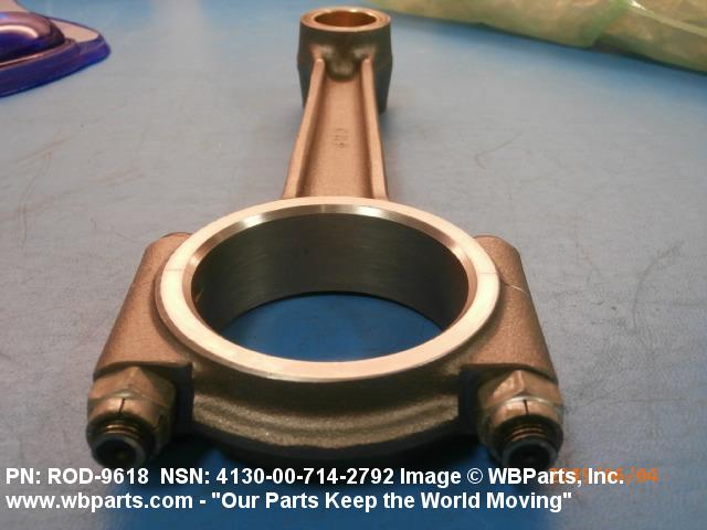 4130-00-714-2792 A device used for connecting a piston to a crankshaft or to a master connecting rod of an internal combustion engine, steam reciprocating engine, reciprocating air compressor, or the like. The rod may be connected directly to the piston, or it may transmit the motion through a crosshead.20725300060Vehicular Brake, Steering, Axle, Wheel, and Track Components28050063Gasoline Reciprocating Engines, Except Aircraft; and Components28100068Gasoline Reciprocating Engines, Aircraft Prime Mover; and Components28150029Diesel Engines and Components41300045Refrigeration and Air Conditioning Components43100028Compressors and Vacuum Pumps43200020Power and Hand Pumps