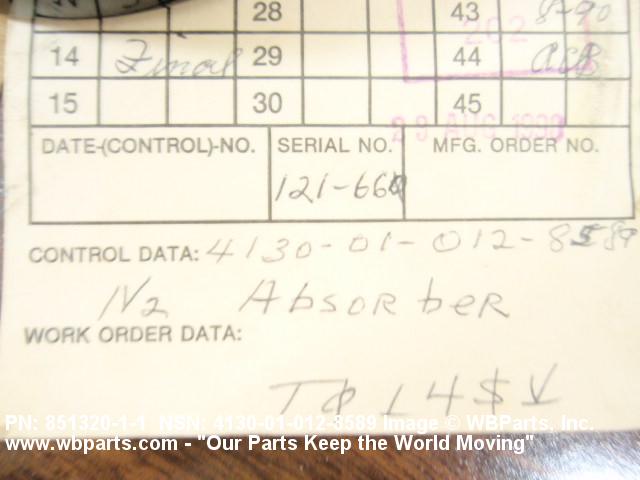 Part Alternates: 85132011, 851320-1-1, 4130-01-012-8589, 01-012-8589, 4130010128589, 010128589
