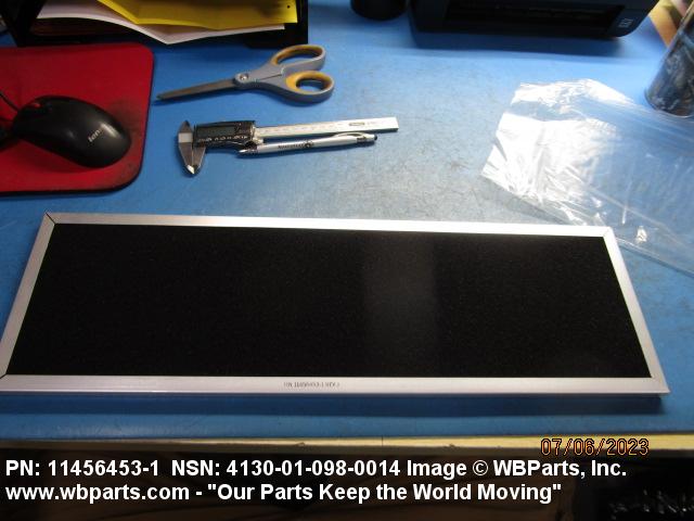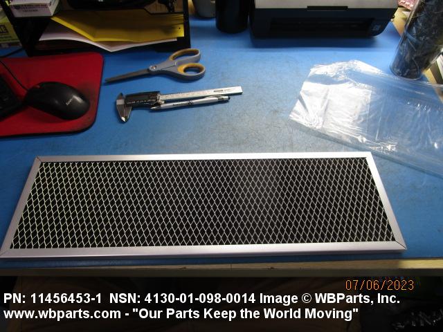 4130-01-098-0014 A replaceable device designed to remove dust, pollen or other foreign matter from the air passing through it. The removal of particles is accomplished by porous fibrous or shredded material (metallic or nonmetallic) which is loosely woven or matted and confined in a frame or retained between perforated sheets of firmer material. It is designed to fit into air conditioners, ventilation systems and hot air furnaces. It may have facilities for radio frequency/electromagnetic interference shielding. The filter may be cleaned by the use of compressed air, blown through the filter element, or by using water and a suitable detergent for cleaning purposes which would extend the life of the filter.20216600062Aircraft Air Conditioning, Heating, and Pressurizing Equipment41300045Refrigeration and Air Conditioning Components