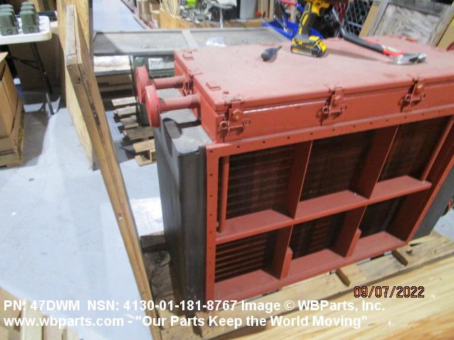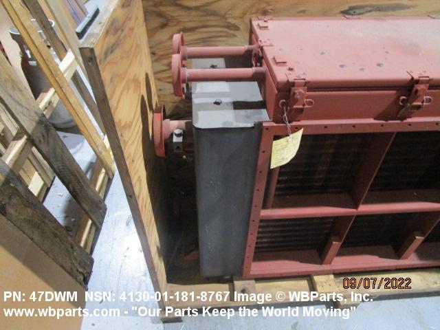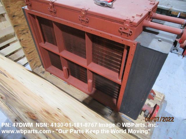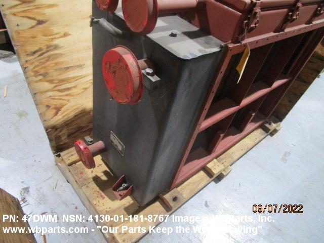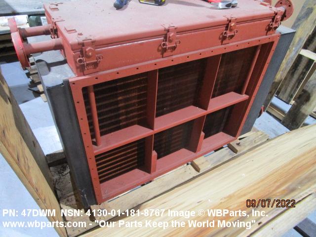 | SPECIAL FEATURES | DESIGNED FOR USE W/CHILLED WATER; ITEM IS EQUIPPED W/SPIRAL TURBULATORS WITHIN TUBES; DESIGNED TO PROVIDE SHOCKPROOF SHIPBOARD SERVICE; 228 TUBES,5/8 IN. OD; 504 FINS,7 PER IN.,SUPPLY AND RETURN CONNECTIONS ARE AT SAME END; 300 LB RATED HYDROSTATIC TEST PRESSURE |
