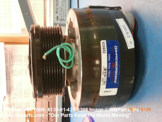 4130-01-420-8306 A centrifugal, reciprocating, or rotary compressor designed to compress refrigerant gas(es) from an initial intake pressure to a final discharge pressure. It is designed to be driven by an independent power source, such as an electric motor, gasoline or diesel engine, or the like. It does not include the prime mover, condenser(s), external filter-drivers, and the like. It may include various peripheral components such as drive pulley, flexible coupling, and the like.