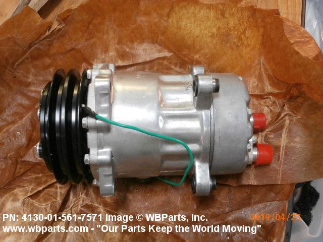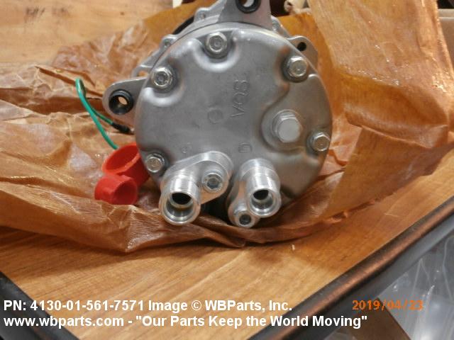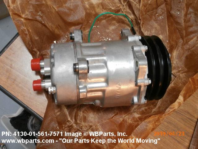 4130-01-561-7571 A centrifugal, reciprocating, or rotary compressor designed to compress refrigerant gas(es) from an initial intake pressure to a final discharge pressure. It is designed to be driven by an independent power source, such as an electric motor, gasoline or diesel engine, or the like. It does not include the prime mover, condenser(s), external filter-drivers, and the like. It may include various peripheral components such as drive pulley, flexible coupling, and the like.