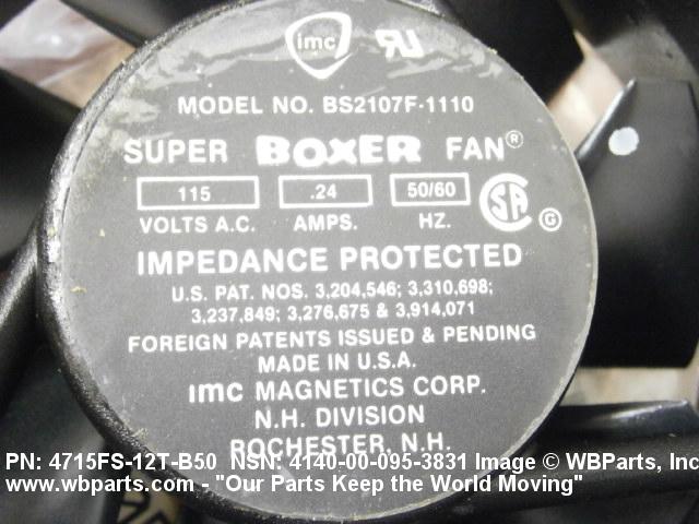 Part Alternates: A3012210, A30122-10, AQTTS100, AQ-TTS-100, BS2107F1110, BS2107F-1110, FAN0051, FAN-0051, 02105908010, 02105908-010, 02105908PC2, 1209403, 1400013, 19925, 23747, 3154475, 3-15-4475, 4715FS12TB50, 4715FS-12TB50, 4715FS-12T-B50, 4715FS12TB50D00, 4715FS-12TB50-D00, 4C550, 77200044, 9100051, 4140-00-095-3831, 00-095-3831, 4140000953831, 000953831
