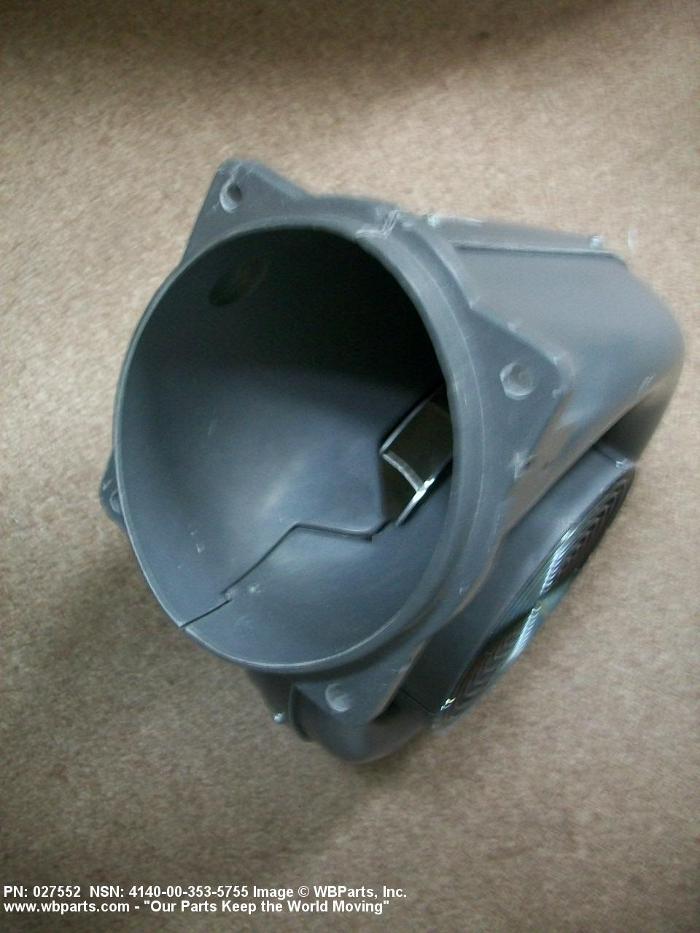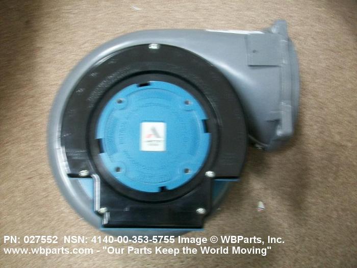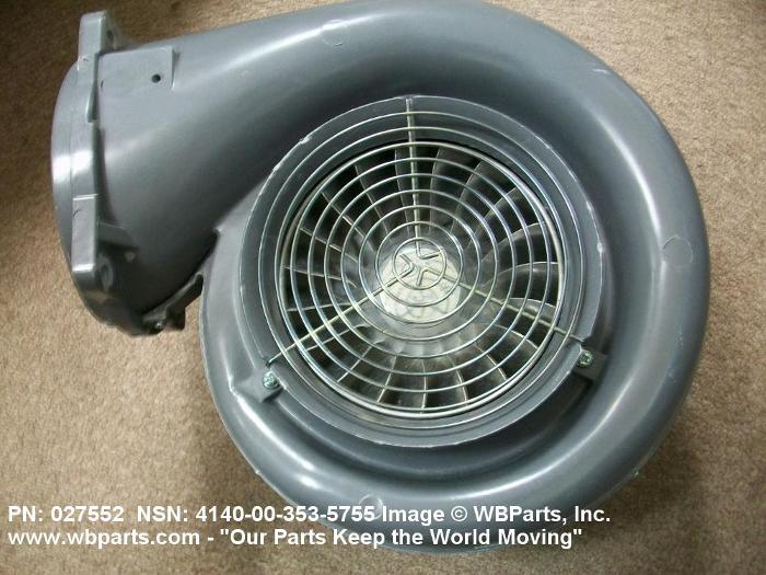 4140-00-353-5755 A nonpositive displacement mechanical device having a centrifugal fan impeller inclosed within a housing. It is designed to move air or gas over a wide range of volumes and pressures. The air or gas is drawn in axially and discharged radially or drawn in radially and discharged axially by centrifugal force through an outlet in the housing.20216600062Aircraft Air Conditioning, Heating, and Pressurizing Equipment41400043Fans, Air Circulators, and Blower Equipment