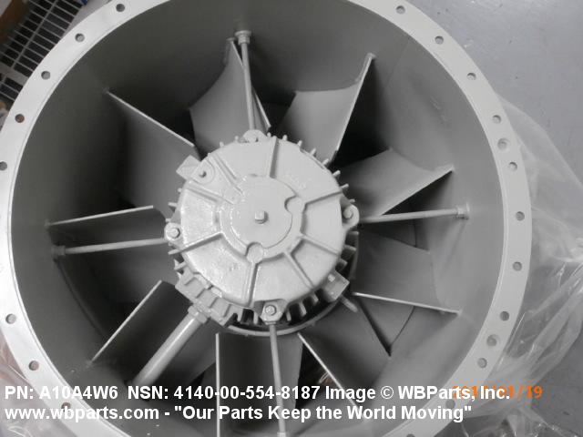 4140-00-554-8187 A nonpositive displacement mechanical device with guide vanes and having an axial fan impeller(s) inclosed within a tubular housing. It is designed primarily for duct installation to move air or gas axially over a wide range of volumes and pressures.