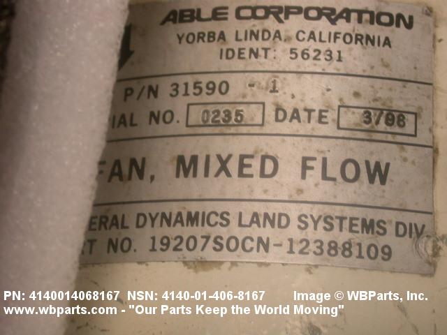 4140-01-406-8167 A nonpositive displacement mechanical device with guide vanes and having an axial fan impeller(s) inclosed within a tubular housing. It is designed primarily for duct installation to move air or gas axially over a wide range of volumes and pressures.