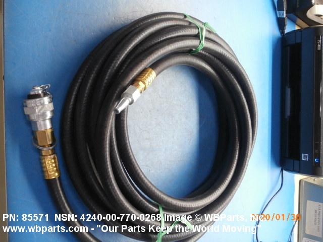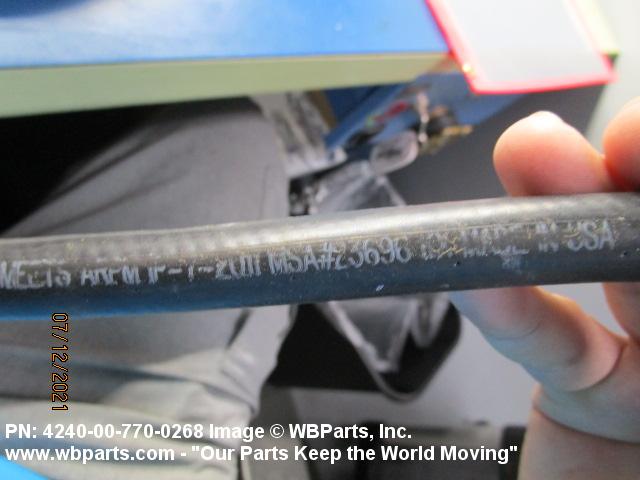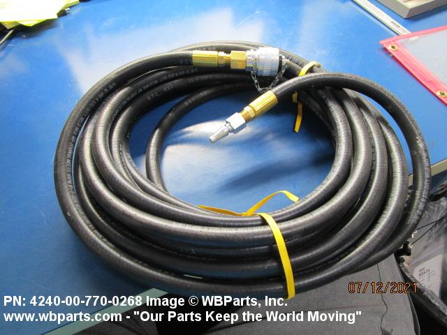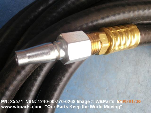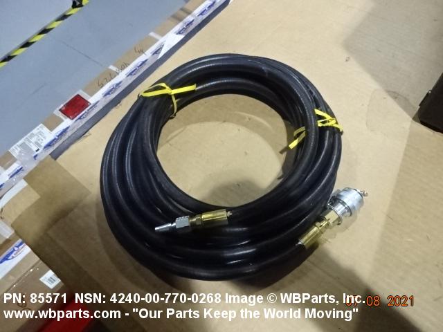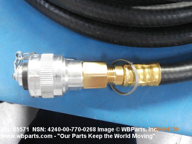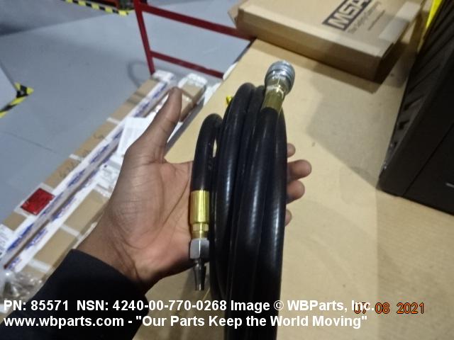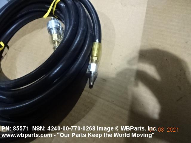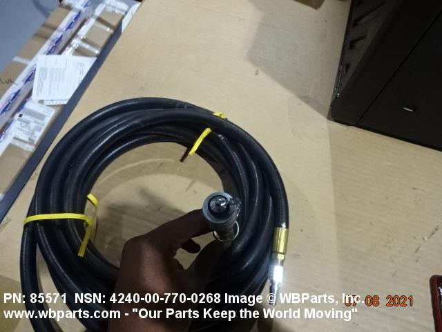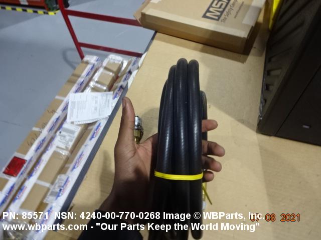 4240-00-770-0268 A length of HOSE, AIR DUCT, AIR BREATHING which may have end couplings on one or both end/or incorporates a communication cable. It is designed for use in breathing oxygen system, air line masks, gas masks, and the like. Excludes items which include the branch or fork hoses; assemblies made up of the oxygen breathing hose, communication cable, wiring for face mask heater, and vent and pressure ducts for the anti-Gsuit and HOSE ASSEMBLY, NONMETALLIC.20342400027Safety and Rescue Equipment47200024Hose and Flexible Tubing65150057Medical and Surgical Instruments, Equipment, and Supplies