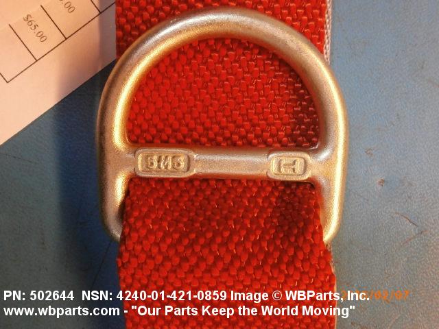4240-01-101-3691 An arrangement of waist band, shoulder straps and hardware such as buckles and RING, DEE. The D-ring is designed to accommodate a life line. It is used for support, protection, raising and/or lowering the wearer working in precarious places such as manholes, tanks, and the like. It may be equipped with a life line and adjustable leg supports.