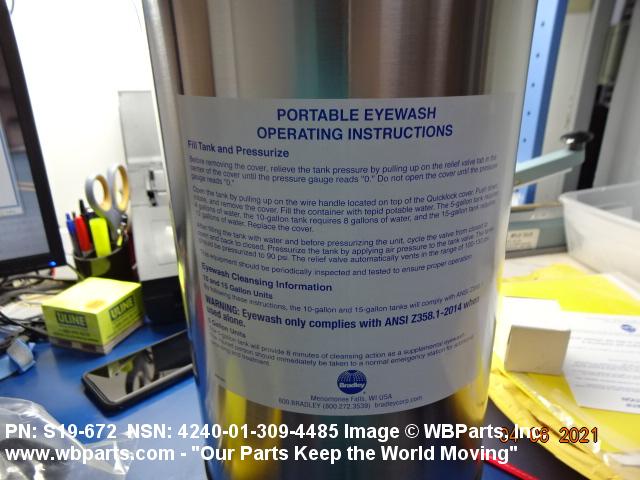 4240-01-309-4485 A self-contained unit which can be bench or wall-mounted. Water is expelled in criss-cross streams to simultaneously flood the face and both eyes in emergency situations.