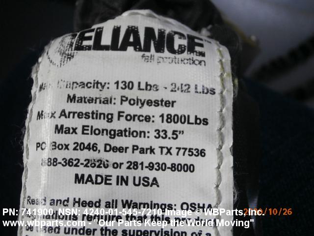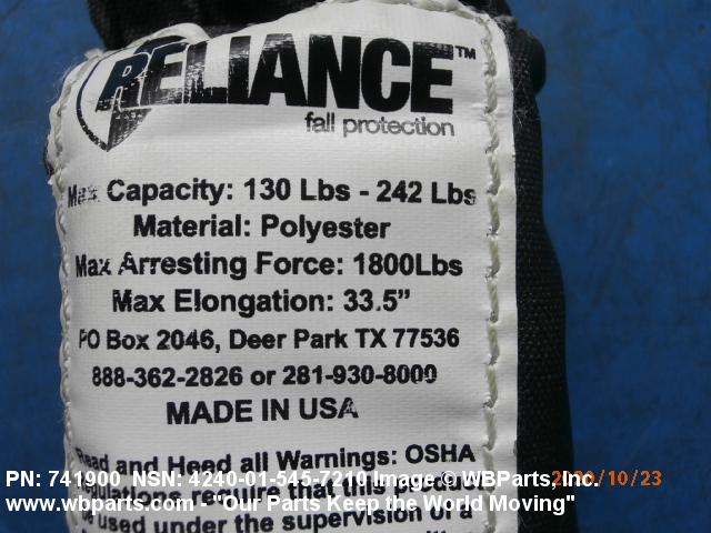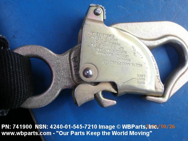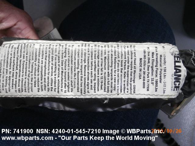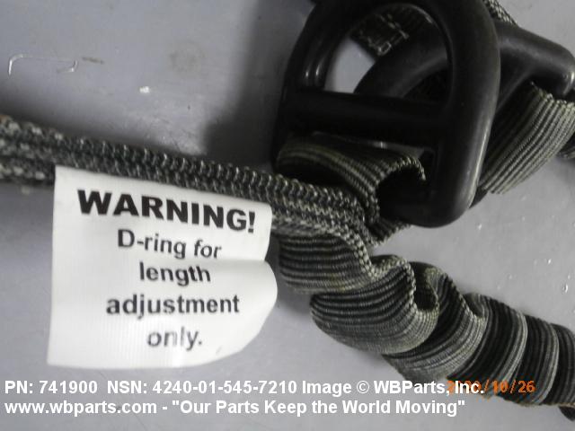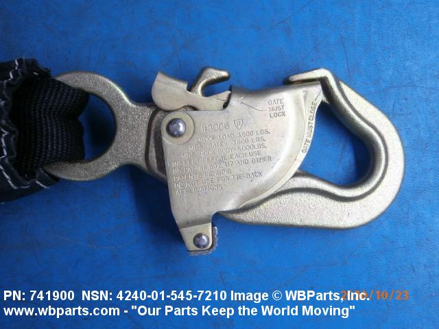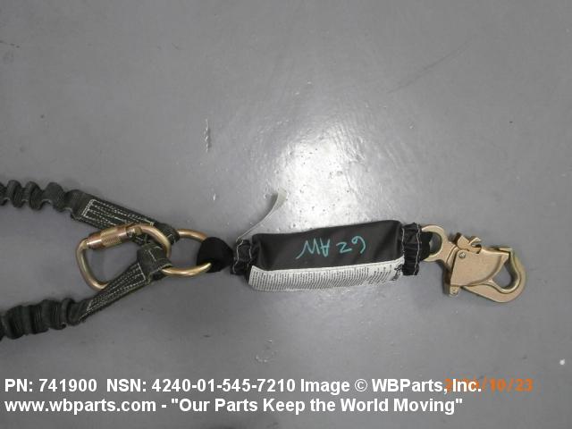 4240-01-545-7210 A fiber rope or webbing that can be fitted with one or more snap hooks of predetermined length, with shock absorbing qualities, to be used with BELT,SAFETY,INDUSTRIAL.or HARNESS,SAFETY,INDUSTRIAL. The fiber rope or webbing may be wound on a reel.