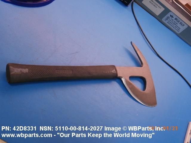 4240-01-613-8367 A one-piece all metal ax, the head of which is designed with a semicircular cutting edge on one side and a picklike projection on the other. The handle is usually covered with a permanently attached insulating grip. The ax is designed to facilitate rescue of persons trapped in wreckage, especially of aircraft or ground vehicles.