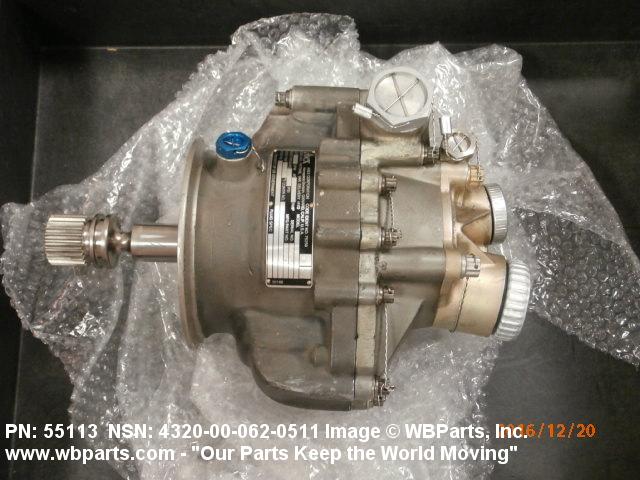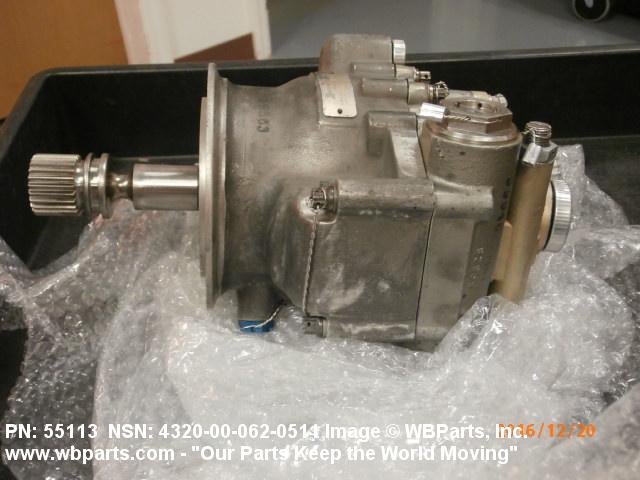 4320-00-062-0511 A positive displacement device which utilizes the reciprocating motion of a multiple number of parallel pistons arranged axially in a cylinder barrel as a means of transferring a liquid from one place to another. The pistons are actuated by revolving the cylinder barrel at an angle to the drive shaft axis or by a tilting box when the cylinder barrel revolves on the drive shaft. The piston displacement may be fixed or variable. It is designed to be driven by a prime mover which is not an integral part of the pump.20216500058Aircraft Hydraulic, Vacuum, and De-icing System Components43200020Power and Hand Pumps
