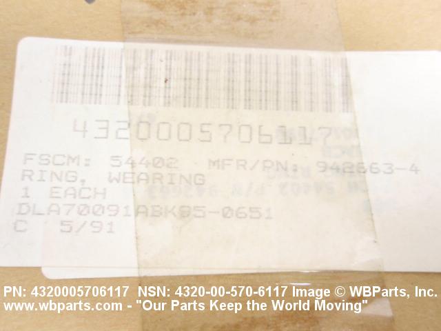 4320-00-570-6117 A cylindrical item with or without flange(s), designed to be inserted in a pump casing or secured to the impeller of a centrifugal pump. It is used for the purpose of providing a close running clearance between the impeller and casing in order to prevent or overcome leakage due to erosion. It may also be used as a diffuser ring in the suction and discharge throats of valves.20229350055Engine System Cooling Components, Aircraft Prime Moving43200020Power and Hand Pumps
