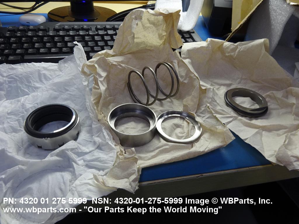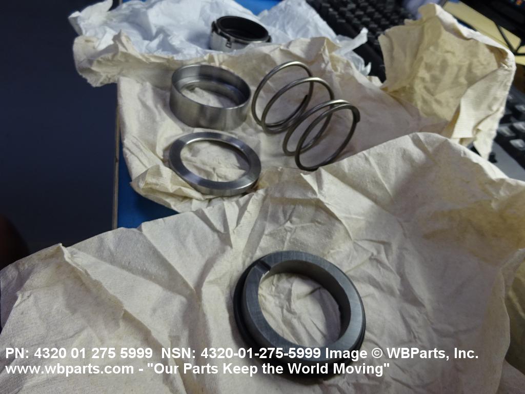 4320-01-275-5999 A combination of items used in sealing various rotary shaft equipment. It may include items such as bellows, disk, drive ring, flexible diaphragm, mating ring, o-ring, retainer, seat, sleeve, washer and the like. Excludes SEAL, PLAIN ENCASED.