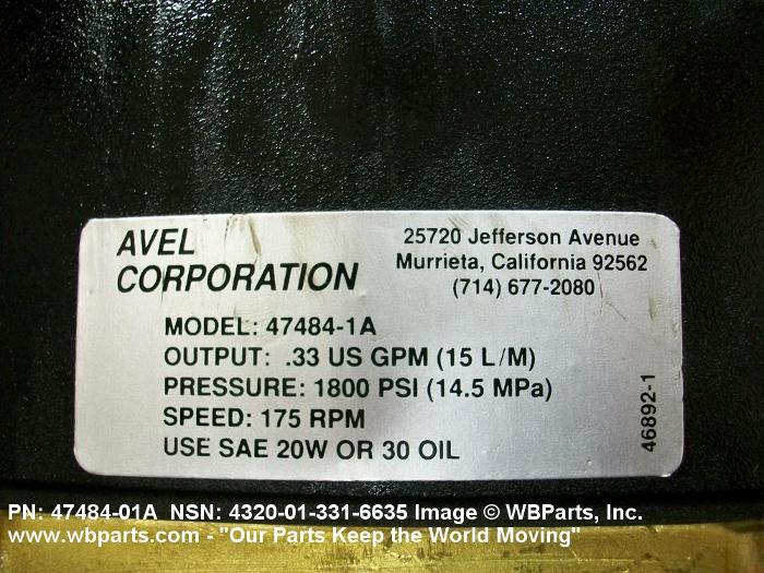 NSN 4320-01-331-6635 4748401A, 47484-01A, 01-331-6635