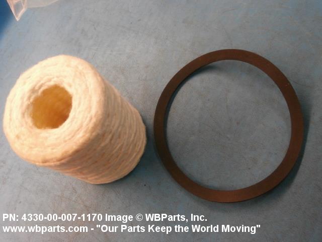 4330-00-007-1170 A replaceable device designed to remove solid particles from fluids ranging in density from heavy liquids to gases. The removal of particles is accomplished by porous material (metallic or non-metallic), stacked disks, wound wire, or the like, constructed so the fluid can flow through the device while the solid particles are retained. It may be designed to fit into a FILTER, FLUID (or similar cavity), or it may have an integral outer casing and mounting facilities and be designed to connect directly to an engine, compressor, or the like. The degree of removal of particles must be nominally rated at less than 50 microns or absolutely rated at less than 75 microns. Excludes FILTER ELEMENT, AIR CONDITIONING. See also STRAINER ELEMENT, SEDIMENT.20916500058Aircraft Hydraulic, Vacuum, and De-icing System Components29100042Engine Fuel System Components, Nonaircraft29150064Engine Fuel System Components, Aircraft and Missile Prime Movers29400064Engine Air and Oil Filters, Strainers, and Cleaners, Nonaircraft29450059Engine Air and Oil Filters, Cleaners, Aircraft Prime Moving43300057Centrifugals, Separators, and Pressure and Vacuum Filters5999000065300053Hospital Furniture, Equipment, Utensils, and Supplies66300029Chemical Analysis Instruments