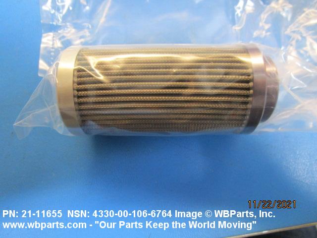 4330-00-106-6764 A replaceable device designed to remove solid particles from fluids ranging in density from heavy liquids to gases. The removal of particles is accomplished by porous material (metallic or non-metallic), stacked disks, wound wire, or the like, constructed so the fluid can flow through the device while the solid particles are retained. It may be designed to fit into a FILTER, FLUID (or similar cavity), or it may have an integral outer casing and mounting facilities and be designed to connect directly to an engine, compressor, or the like. The degree of removal of particles must be nominally rated at less than 50 microns or absolutely rated at less than 75 microns. Excludes FILTER ELEMENT, AIR CONDITIONING. See also STRAINER ELEMENT, SEDIMENT.20916500058Aircraft Hydraulic, Vacuum, and De-icing System Components29100042Engine Fuel System Components, Nonaircraft29150064Engine Fuel System Components, Aircraft and Missile Prime Movers29400064Engine Air and Oil Filters, Strainers, and Cleaners, Nonaircraft29450059Engine Air and Oil Filters, Cleaners, Aircraft Prime Moving43300057Centrifugals, Separators, and Pressure and Vacuum Filters5999000065300053Hospital Furniture, Equipment, Utensils, and Supplies66300029Chemical Analysis Instruments