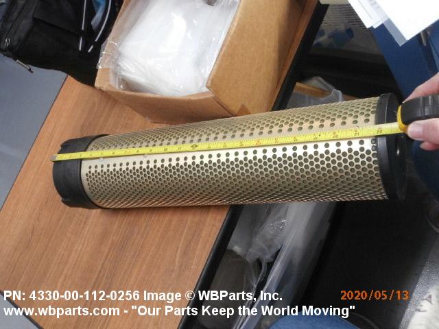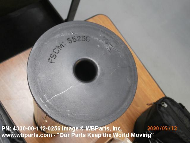 4330-00-112-0256 A replaceable device designed to remove solid particles from fluids ranging in density from heavy liquids to gases. The removal of particles is accomplished by porous material (metallic or non-metallic), stacked disks, wound wire, or the like, constructed so the fluid can flow through the device while the solid particles are retained. It may be designed to fit into a FILTER, FLUID (or similar cavity), or it may have an integral outer casing and mounting facilities and be designed to connect directly to an engine, compressor, or the like. The degree of removal of particles must be nominally rated at less than 50 microns or absolutely rated at less than 75 microns. Excludes FILTER ELEMENT, AIR CONDITIONING. See also STRAINER ELEMENT, SEDIMENT.20916500058Aircraft Hydraulic, Vacuum, and De-icing System Components29100042Engine Fuel System Components, Nonaircraft29150064Engine Fuel System Components, Aircraft and Missile Prime Movers29400064Engine Air and Oil Filters, Strainers, and Cleaners, Nonaircraft29450059Engine Air and Oil Filters, Cleaners, Aircraft Prime Moving43300057Centrifugals, Separators, and Pressure and Vacuum Filters5999000065300053Hospital Furniture, Equipment, Utensils, and Supplies66300029Chemical Analysis Instruments