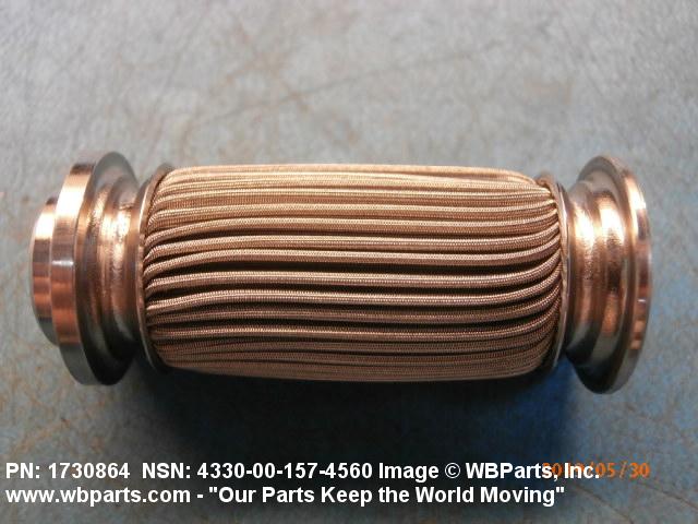 4330-00-157-4560 A replaceable device designed to remove solid particles from fluids ranging in density from heavy liquids to gases. The removal of particles is accomplished by porous material (metallic or non-metallic), stacked disks, wound wire, or the like, constructed so the fluid can flow through the device while the solid particles are retained. It may be designed to fit into a FILTER, FLUID (or similar cavity), or it may have an integral outer casing and mounting facilities and be designed to connect directly to an engine, compressor, or the like. The degree of removal of particles must be nominally rated at less than 50 microns or absolutely rated at less than 75 microns. Excludes FILTER ELEMENT, AIR CONDITIONING. See also STRAINER ELEMENT, SEDIMENT.20916500058Aircraft Hydraulic, Vacuum, and De-icing System Components29100042Engine Fuel System Components, Nonaircraft29150064Engine Fuel System Components, Aircraft and Missile Prime Movers29400064Engine Air and Oil Filters, Strainers, and Cleaners, Nonaircraft29450059Engine Air and Oil Filters, Cleaners, Aircraft Prime Moving43300057Centrifugals, Separators, and Pressure and Vacuum Filters5999000065300053Hospital Furniture, Equipment, Utensils, and Supplies66300029Chemical Analysis Instruments